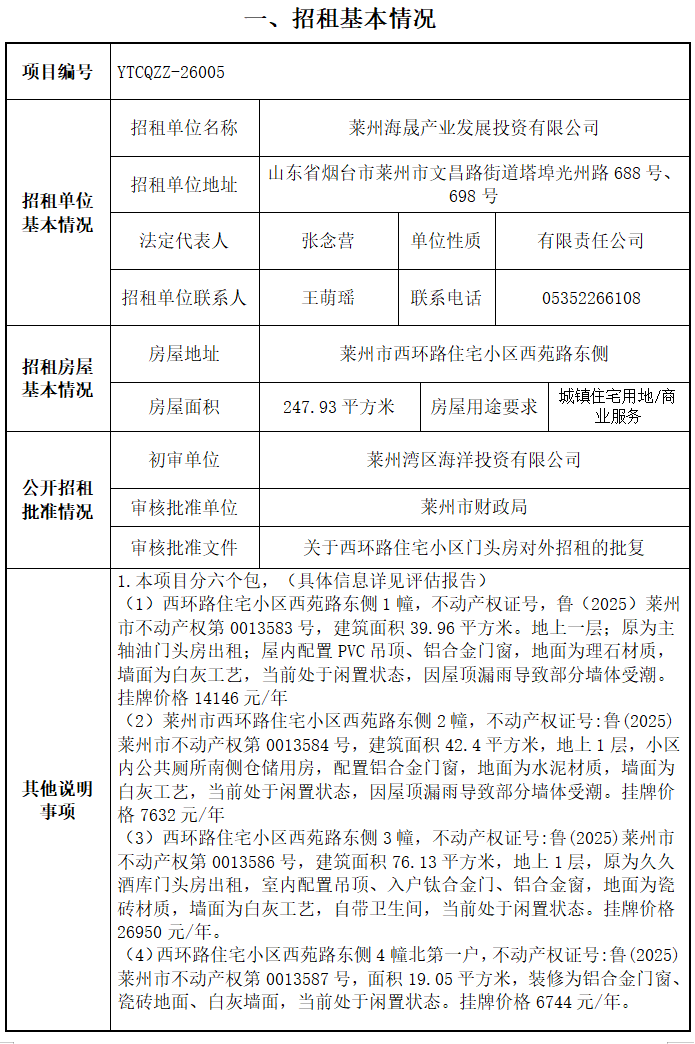萊州后勤管理中心業(yè)務(wù)用房招租